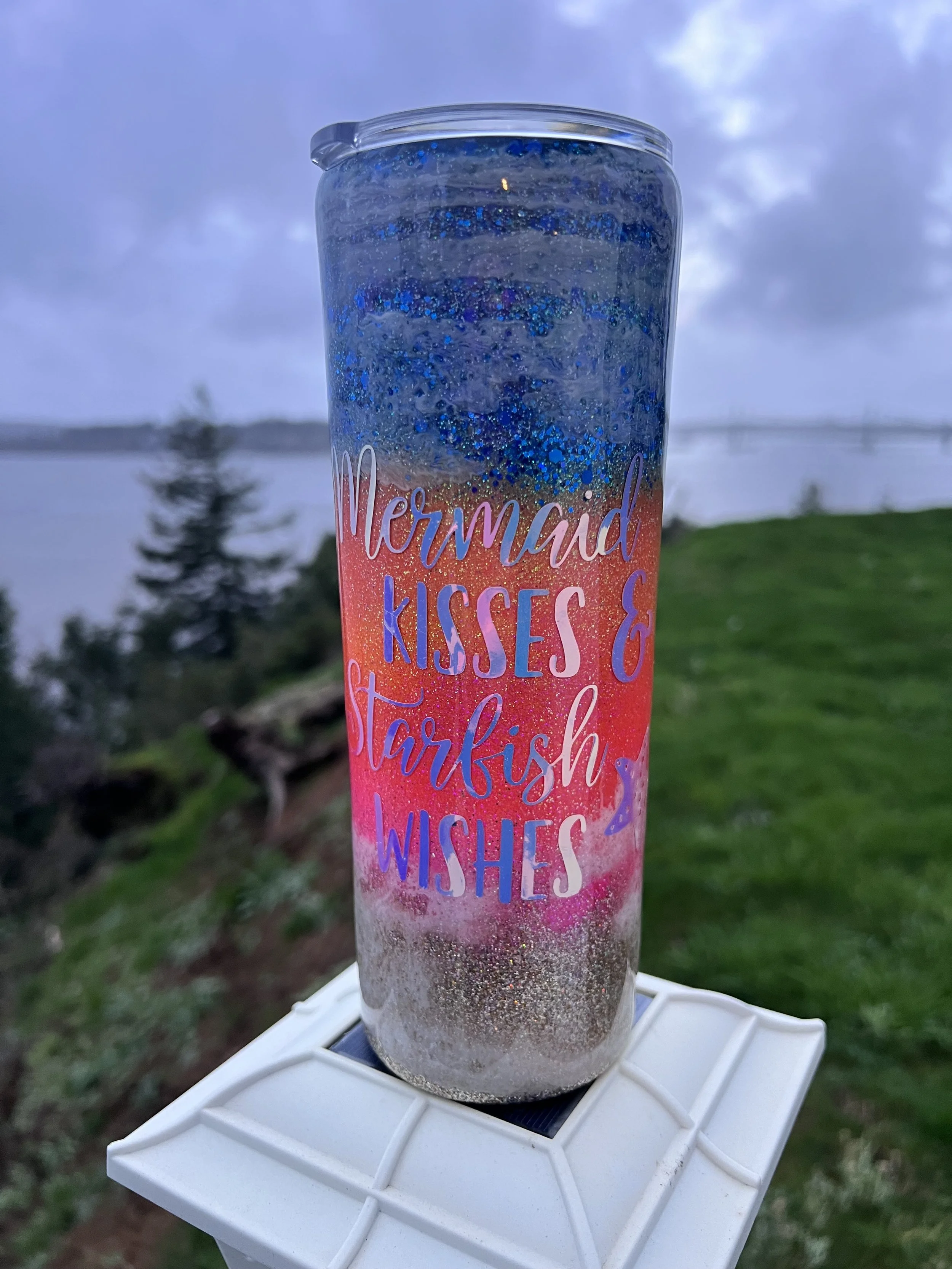 Imagining the world of Mermaids and sea creatures. Starfish, and the vast majority of other sea life. Enjoy your hot or cold drink for hours while feeling the beachy vibes of this tumbler.